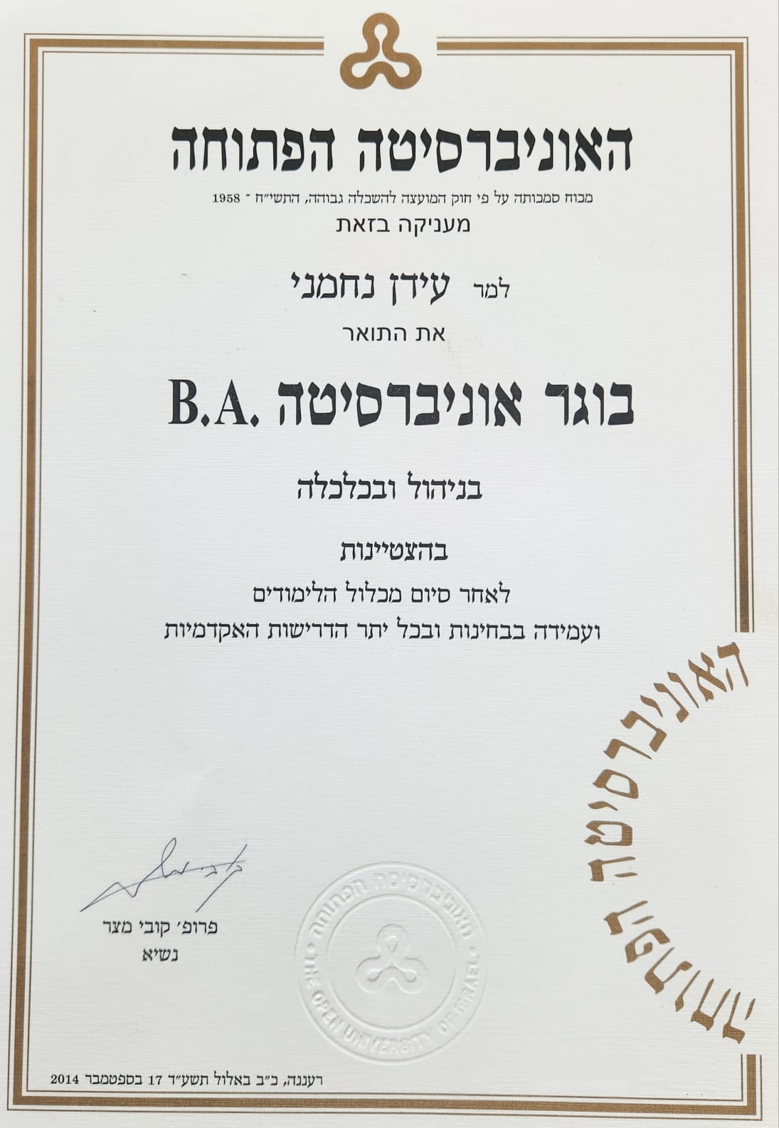 תואר ראשון בכלכלה וניהול, האונ' הפתוחה (בהצטיינות).