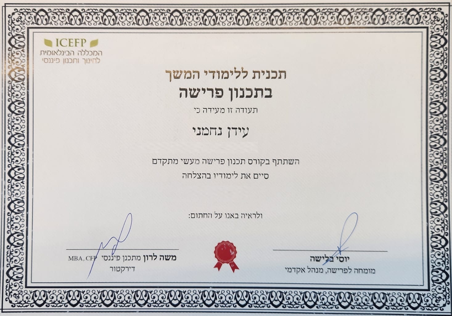קורס תכנון פרישה מעשי מתקדם, המכללה הבינלאומית לחינוך ותכנון פיננסי.